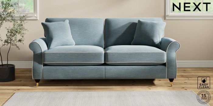 7.3.1 Buy Ashford Relaxed Sit 3 Seater Sofa Fine Chenille with Contrast Mid Blue and Oyster Castor - Dark from the Next UK online shop Click here to use our accessible website
