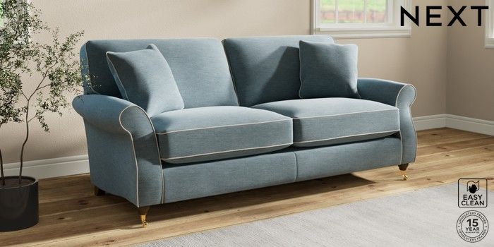 7.3.1 Buy Ashford Relaxed Sit 3 Seater Sofa Fine Chenille with Contrast Mid Blue and Oyster Castor - Mid from the Next UK online shop Click here to use our accessible website