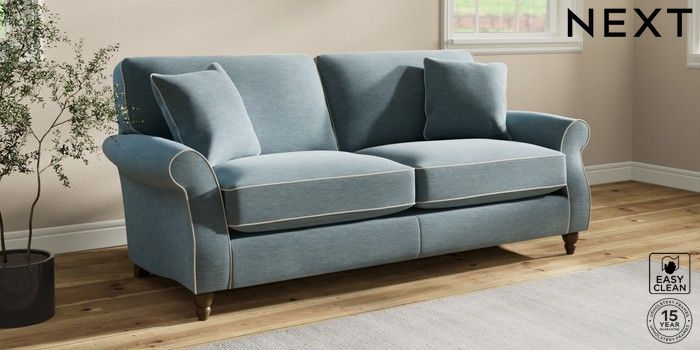 7.3.1 Buy Ashford Relaxed Sit 3 Seater Sofa Fine Chenille with Contrast Mid Blue and Oyster Low Turned - Mid from the Next UK online shop Click here to use our accessible website