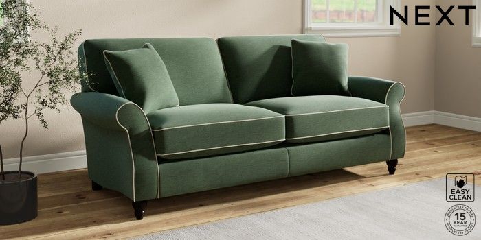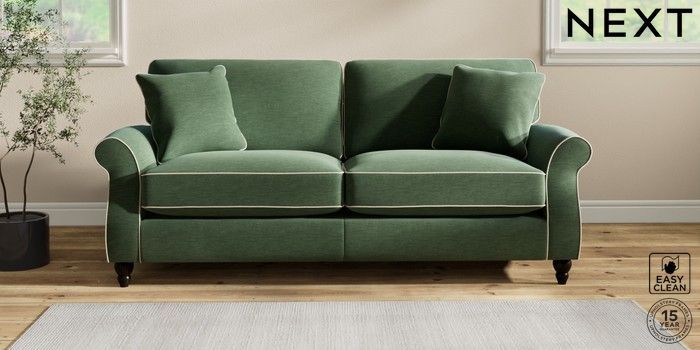 7.3.1 Buy Ashford Relaxed Sit 3 Seater Sofa Fine Chenille with Contrast Mid Khaki Green and Oyster Low Turned - Dark from the Next UK online shop Click here to use our accessible website