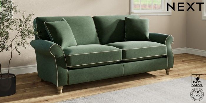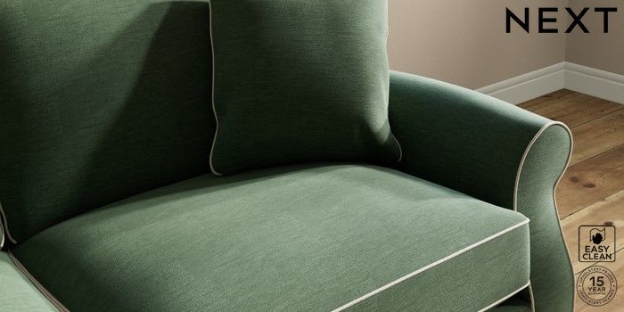 7.3.1 Buy Ashford Relaxed Sit 3 Seater Sofa Fine Chenille with Contrast Mid Khaki Green and Oyster Low Turned - Light from the Next UK online shop Click here to use our accessible website
