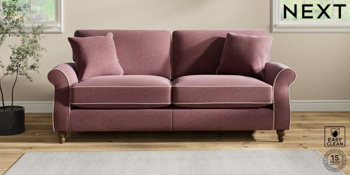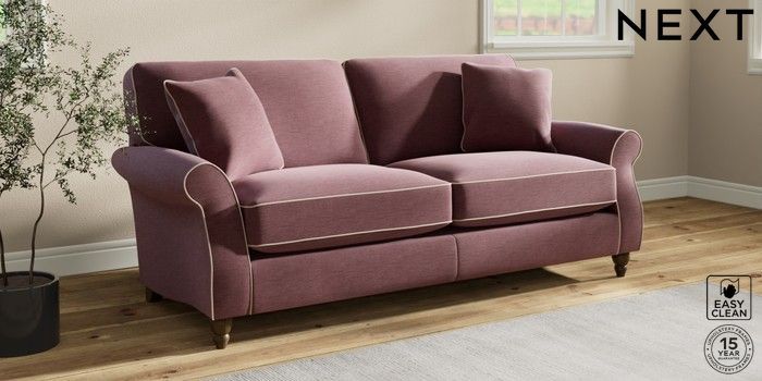 7.3.1 Buy Ashford Relaxed Sit 3 Seater Sofa Fine Chenille with Contrast Mid Mulberry Purple and Oyster Low Turned - Mid from the Next UK online shop Click here to use our accessible website