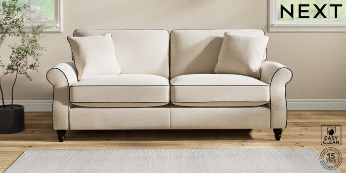 7.3.1 Buy Ashford Relaxed Sit 3 Seater Sofa Fine Chenille with Contrast Oyster and Black Low Turned - Dark from the Next UK online shop Click here to use our accessible website