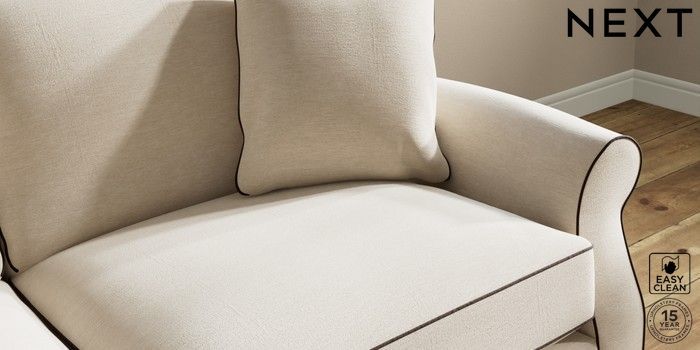 7.3.1 Buy Ashford Relaxed Sit 3 Seater Sofa Fine Chenille with Contrast Oyster and Chocolate Brown Castor - Light from the Next UK online shop Click here to use our accessible website