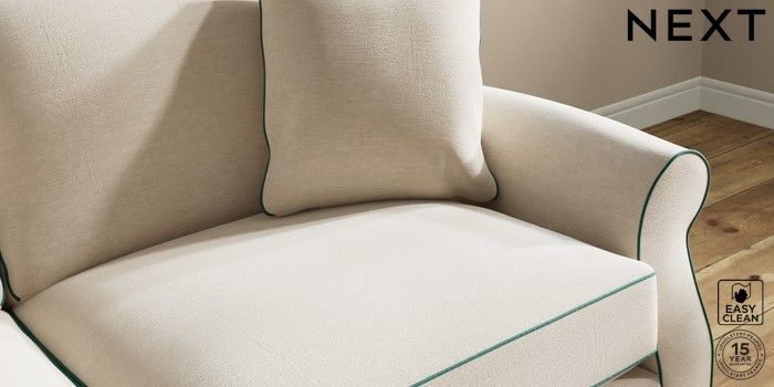 7.3.1 Buy Ashford Relaxed Sit 3 Seater Sofa Fine Chenille with Contrast Oyster and Dark Juniper Green Castor - Mid from the Next UK online shop Click here to use our accessible website