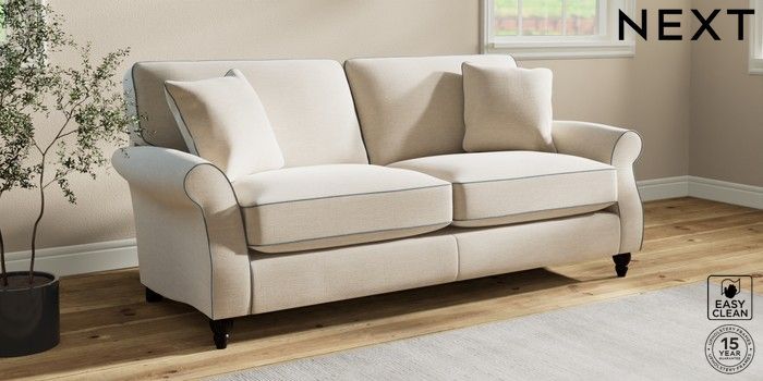 7.3.1 Buy Ashford Relaxed Sit 3 Seater Sofa Fine Chenille with Contrast Oyster and Mid Blue Low Turned - Dark from the Next UK online shop Click here to use our accessible website