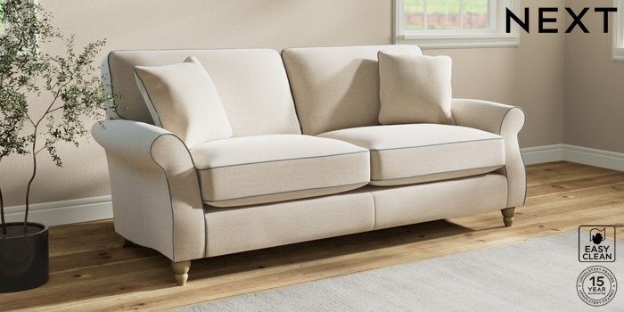 7.3.1 Buy Ashford Relaxed Sit 3 Seater Sofa Fine Chenille with Contrast Oyster and Mid Blue Low Turned - Light from the Next UK online shop Click here to use our accessible website