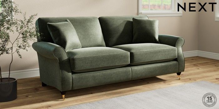 6.12.1 Buy Ashford Relaxed Sit 3 Seater Sofa Luxe Chenille Mid Green Castor - Dark from the Next UK online shop Click here to use our accessible website