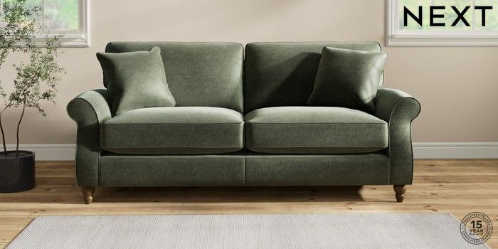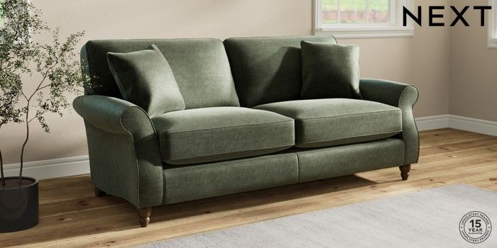 6.12.1 Buy Ashford Relaxed Sit 3 Seater Sofa Luxe Chenille Mid Green Low Turned - Mid from the Next UK online shop Click here to use our accessible website