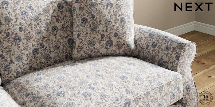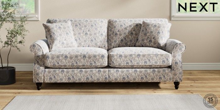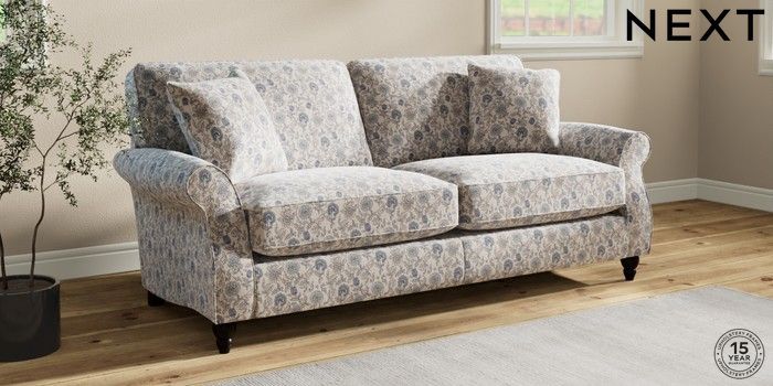 7.3.1 Buy Ashford Relaxed Sit 3 Seater Sofa Relaxed Linen Look Print Woodblock Floral Blue Low Turned - Dark from the Next UK online shop Click here to use our accessible website