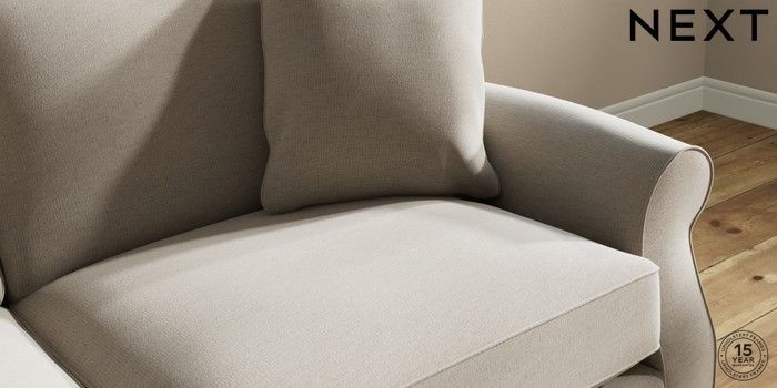 6.12.1 Buy Ashford Relaxed Sit 3 Seater Sofa Ripple Chenille Light Natural Modern Turned Metal Cap - Mid from the Next UK online shop Click here to use our accessible website