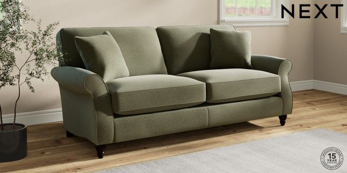 6.12.1 Buy Ashford Relaxed Sit 3 Seater Sofa Ripple Chenille Mid Moss Green Low Turned - Dark from the Next UK online shop Click here to use our accessible website