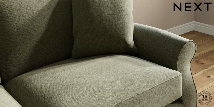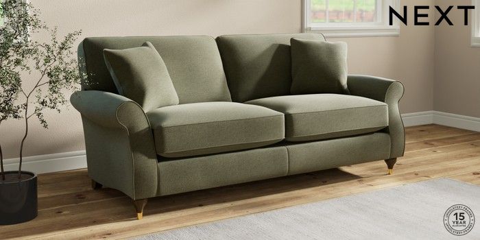 6.12.1 Buy Ashford Relaxed Sit 3 Seater Sofa Ripple Chenille Mid Moss Green Modern Turned Metal Cap - Mid from the Next UK online shop Click here to use our accessible website