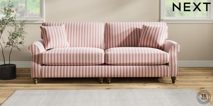 7.2.6 Buy Ashford Relaxed Sit 4 Seater Sofa Bold Chenille Stripe Dark Pink Low Turned - Mid from the Next UK online shop Click here to use our accessible website