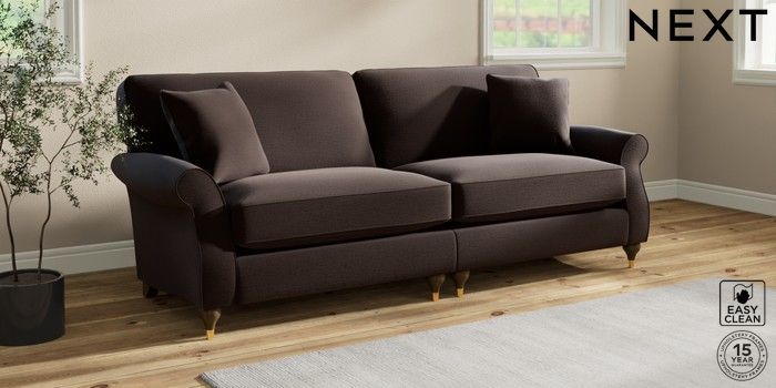 6.12.1 Buy Ashford Relaxed Sit 4 Seater Sofa Fine Chenille Easy Clean Chocolate Brown Modern Turned Metal Cap - Mid from the Next UK online shop Click here to use our accessible website