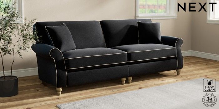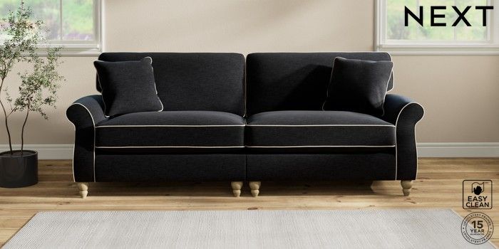 7.3.1 Buy Ashford Relaxed Sit 4 Seater Sofa Fine Chenille with Contrast Black and Oyster Low Turned - Light from the Next UK online shop Click here to use our accessible website