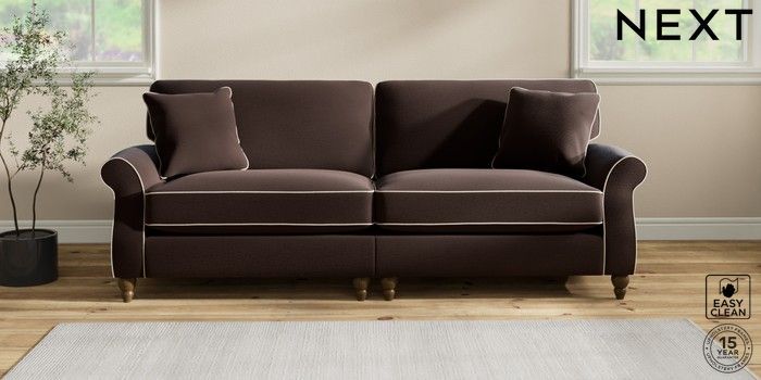 7.3.1 Buy Ashford Relaxed Sit 4 Seater Sofa Fine Chenille with Contrast Chocolate Brown and Oyster Low Turned - Mid from the Next UK online shop Click here to use our accessible website