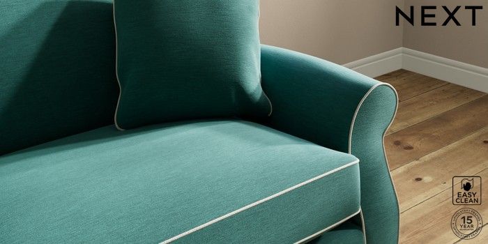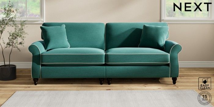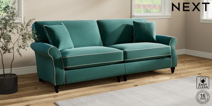 7.3.1 Buy Ashford Relaxed Sit 4 Seater Sofa Fine Chenille with Contrast Dark Juniper Green and Oyster Low Turned - Dark from the Next UK online shop Click here to use our accessible website
