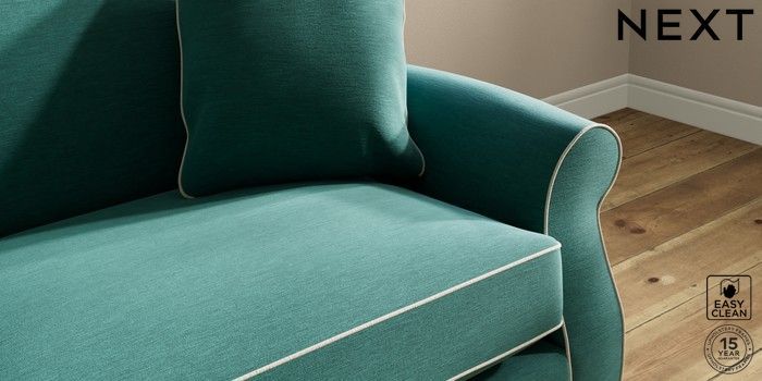 7.3.1 Buy Ashford Relaxed Sit 4 Seater Sofa Fine Chenille with Contrast Dark Juniper Green and Oyster Modern Turned Metal Cap - Mid from the Next UK online shop Click here to use our accessible website
