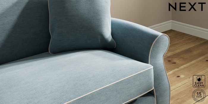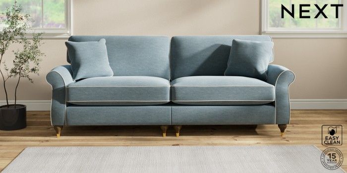 7.3.1 Buy Ashford Relaxed Sit 4 Seater Sofa Fine Chenille with Contrast Mid Blue and Oyster Modern Turned Metal Cap - Mid from the Next UK online shop Click here to use our accessible website