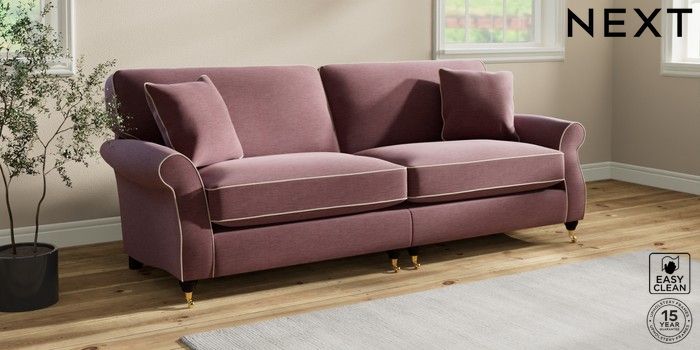7.3.1 Buy Ashford Relaxed Sit 4 Seater Sofa Fine Chenille with Contrast Mid Mulberry Purple and Oyster Castor - Dark from the Next UK online shop Click here to use our accessible website