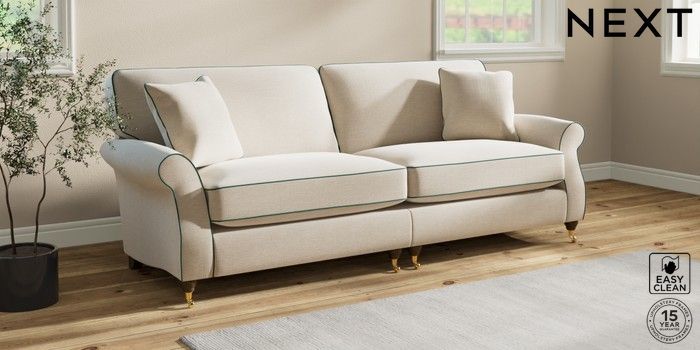 7.3.1 Buy Ashford Relaxed Sit 4 Seater Sofa Fine Chenille with Contrast Oyster and Dark Juniper Green Castor - Mid from the Next UK online shop Click here to use our accessible website