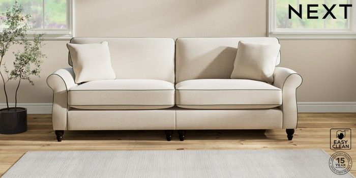 7.3.1 Buy Ashford Relaxed Sit 4 Seater Sofa Fine Chenille with Contrast Oyster and Mid Khaki Green Low Turned - Dark from the Next UK online shop Click here to use our accessible website