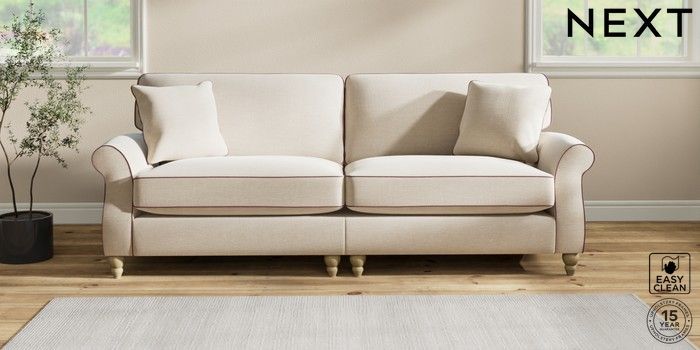 7.3.1 Buy Ashford Relaxed Sit 4 Seater Sofa Fine Chenille with Contrast Oyster and Mid Mulberry Purple Low Turned - Light from the Next UK online shop Click here to use our accessible website