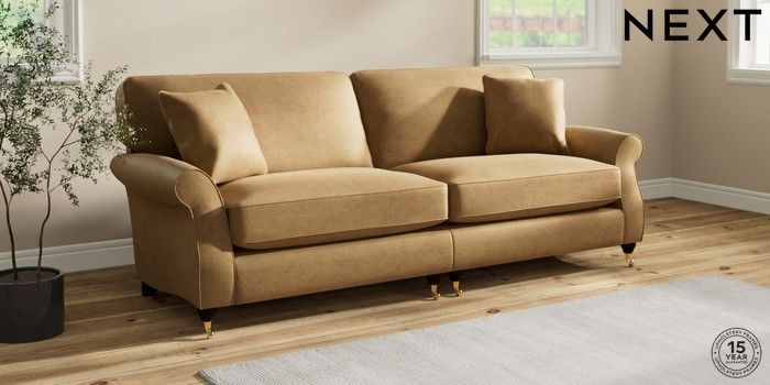 6.12.1 Buy Ashford Relaxed Sit 4 Seater Sofa Luxe Chenille Honey Yellow Castor - Dark from the Next UK online shop Click here to use our accessible website
