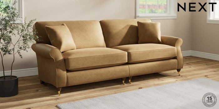 6.12.1 Buy Ashford Relaxed Sit 4 Seater Sofa Luxe Chenille Honey Yellow Castor - Mid from the Next UK online shop Click here to use our accessible website