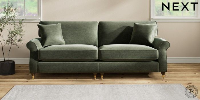 6.12.1 Buy Ashford Relaxed Sit 4 Seater Sofa Luxe Chenille Mid Green Castor - Mid from the Next UK online shop Click here to use our accessible website