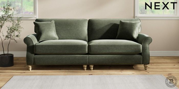 6.12.1 Buy Ashford Relaxed Sit 4 Seater Sofa Luxe Chenille Mid Green Low Turned - Light from the Next UK online shop Click here to use our accessible website