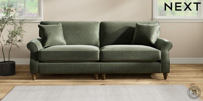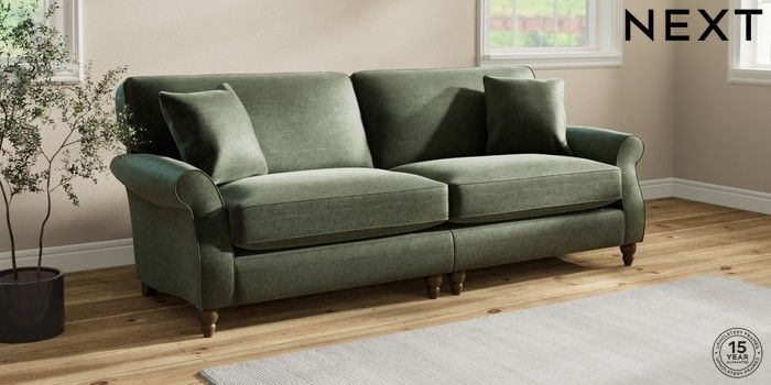 6.12.1 Buy Ashford Relaxed Sit 4 Seater Sofa Luxe Chenille Mid Green Low Turned - Mid from the Next UK online shop Click here to use our accessible website