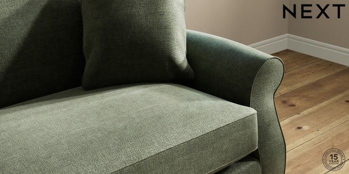 6.12.1 Buy Ashford Relaxed Sit 4 Seater Sofa Luxe Chenille Mid Green Modern Turned Metal Cap - Mid from the Next UK online shop Click here to use our accessible website