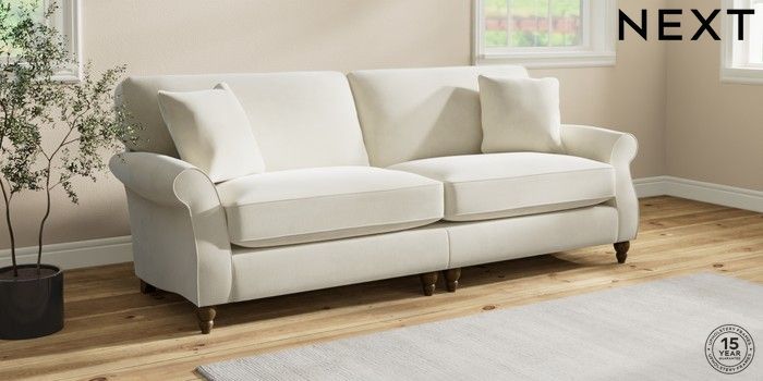 7.0.3 Buy Ashford Relaxed Sit 4 Seater Sofa Luxe Chenille Oyster Low Turned - Mid from the Next UK online shop Click here to use our accessible website