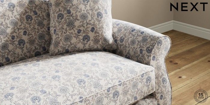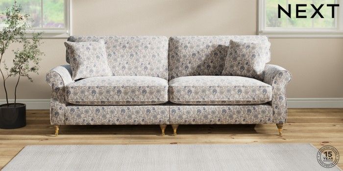 7.3.1 Buy Ashford Relaxed Sit 4 Seater Sofa Relaxed Linen Look Print Woodblock Floral Blue Castor - Light from the Next UK online shop Click here to use our accessible website