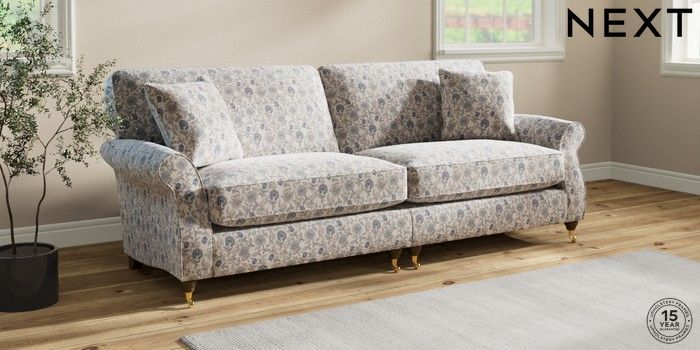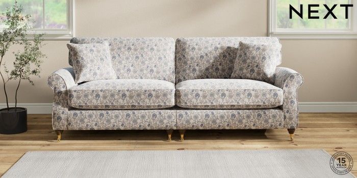 7.3.1 Buy Ashford Relaxed Sit 4 Seater Sofa Relaxed Linen Look Print Woodblock Floral Blue Castor - Mid from the Next UK online shop Click here to use our accessible website