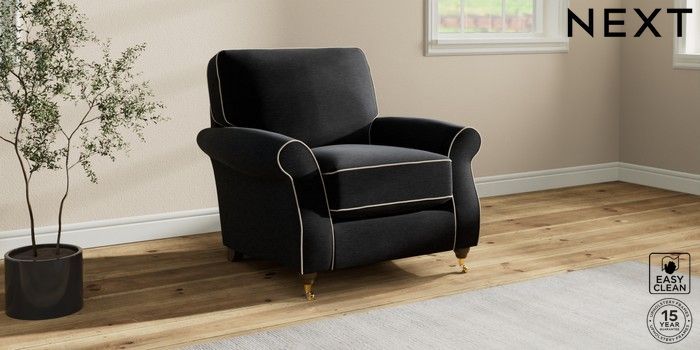 7.3.1 Buy Ashford Relaxed Sit Armchair Fine Chenille with Contrast Black and Oyster Castor - Mid from the Next UK online shop Click here to use our accessible website