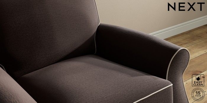 7.3.1 Buy Ashford Relaxed Sit Armchair Fine Chenille with Contrast Chocolate Brown and Oyster Low Turned - Light from the Next UK online shop Click here to use our accessible website