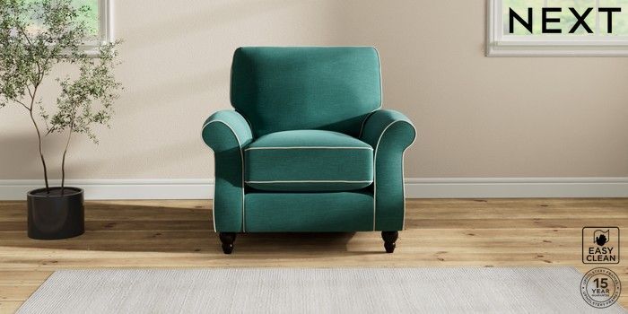 7.3.1 Buy Ashford Relaxed Sit Armchair Fine Chenille with Contrast Dark Juniper Green and Oyster Low Turned - Dark from the Next UK online shop Click here to use our accessible website