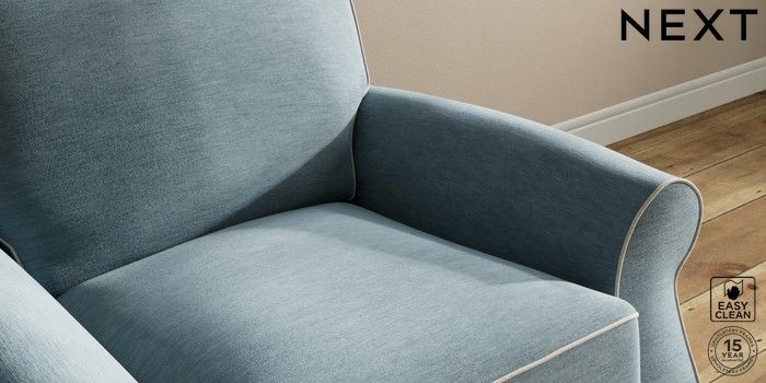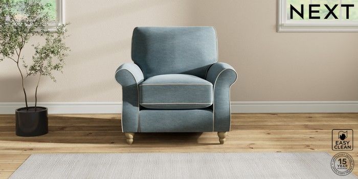 7.3.1 Buy Ashford Relaxed Sit Armchair Fine Chenille with Contrast Mid Blue and Oyster Low Turned - Light from the Next UK online shop Click here to use our accessible website
