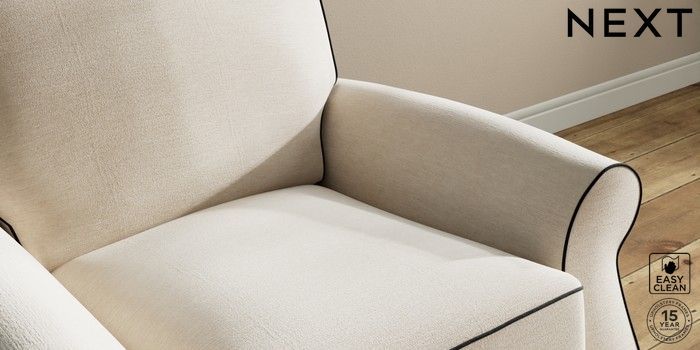7.3.1 Buy Ashford Relaxed Sit Armchair Fine Chenille with Contrast Oyster and Black Low Turned - Dark from the Next UK online shop Click here to use our accessible website