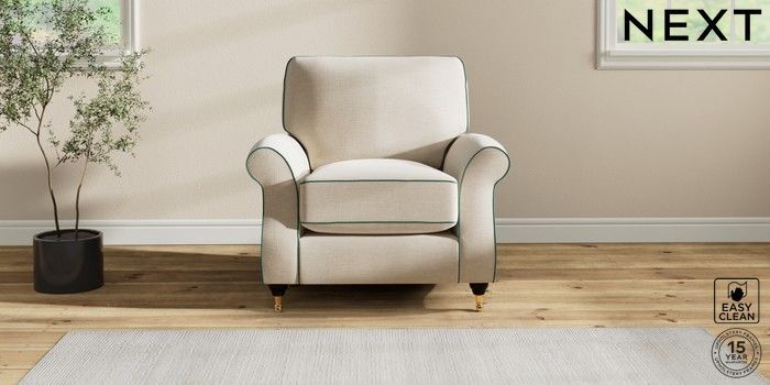 7.3.1 Buy Ashford Relaxed Sit Armchair Fine Chenille with Contrast Oyster and Dark Juniper Green Castor - Dark from the Next UK online shop Click here to use our accessible website