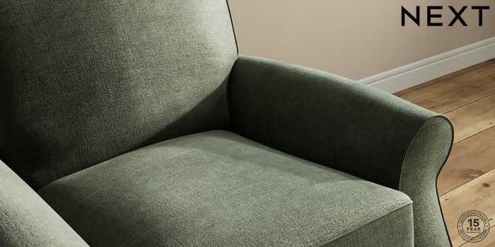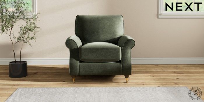 6.12.1 Buy Ashford Relaxed Sit Armchair Luxe Chenille Mid Green Castor - Mid from the Next UK online shop Click here to use our accessible website
