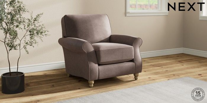 6.12.1 Buy Ashford Relaxed Sit Armchair Luxe Chenille Mink Brown Low Turned - Light from the Next UK online shop Click here to use our accessible website