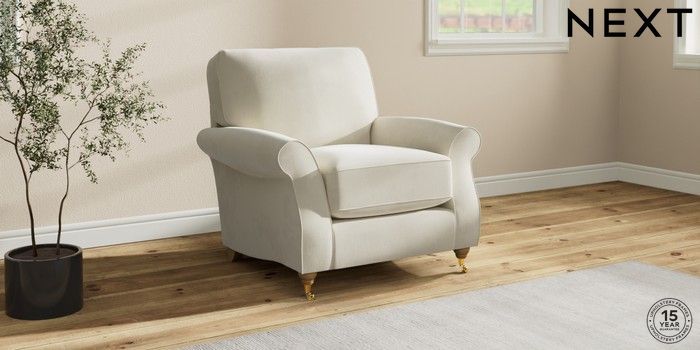 7.0.3 Buy Ashford Relaxed Sit Armchair Luxe Chenille Oyster Castor - Light from the Next UK online shop Click here to use our accessible website