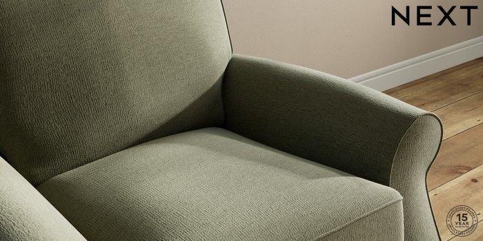 6.12.1 Buy Ashford Relaxed Sit Armchair Ripple Chenille Mid Moss Green Low Turned - Dark from the Next UK online shop Click here to use our accessible website