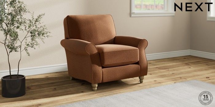 6.12.1 Buy Ashford Relaxed Sit Armchair Ripple Chenille Mid Rust Brown Low Turned - Light from the Next UK online shop Click here to use our accessible website