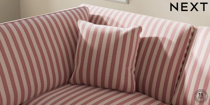 7.3.1 Buy Ashford Relaxed Sit Medium Corner Chaise - Left Hand Bold Chenille Stripe Dark Pink Low Turned - Dark from the Next UK online shop