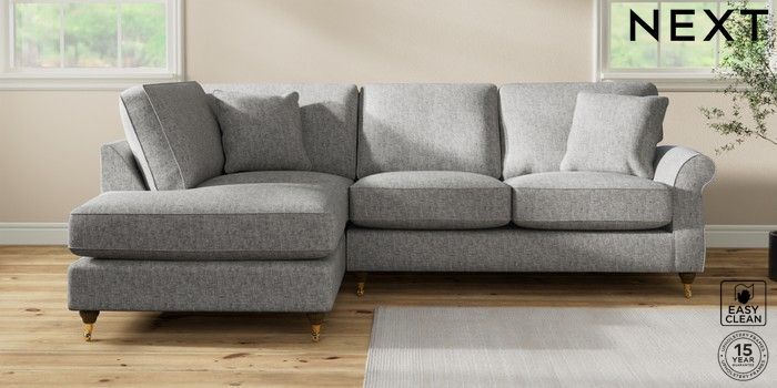 6.12.1 Buy Ashford Relaxed Sit Medium Corner Chaise - Left Hand Chunky Boucle Easy Clean Light Grey Castor - Mid from the Next UK online shop Click here to use our accessible website